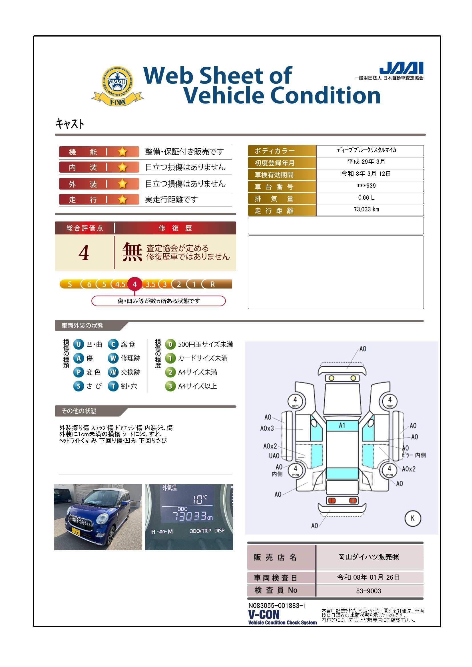 ※評価点及び上記コメントは、評価日時での車両状態を示したものです。