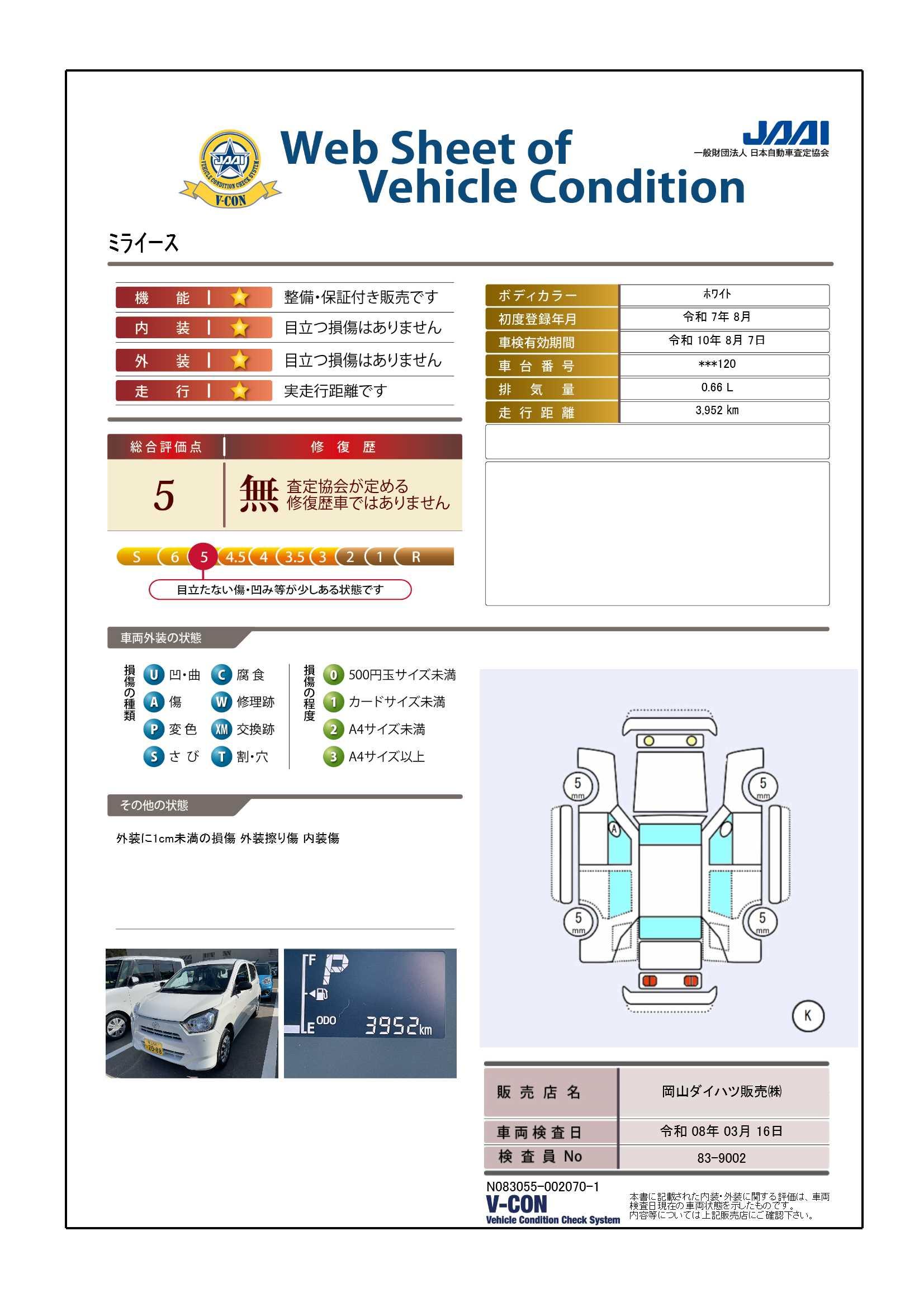 ※評価点及び上記コメントは、評価日時での車両状態を示したものです。