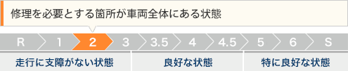 車両状態証明書の見方となります。検査団体によって、表記方法が異なりますので該当車両の車両状態証明書を御確認の上、ご覧ください。