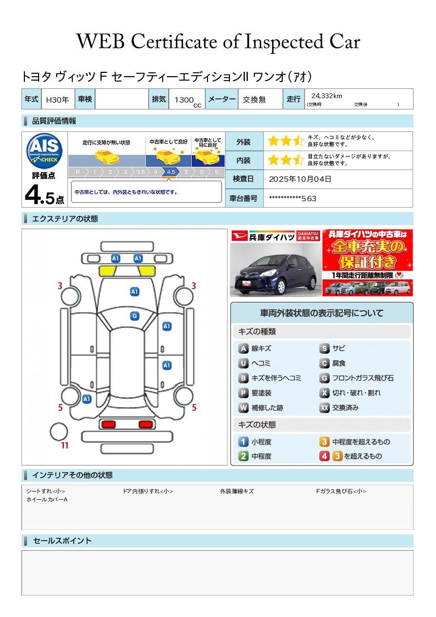 【第三者機関の車両品質評価書付き】車の状態が詳しくわかる車両状態証明書が付いておりますので、安心してお選びいただけます!詳しくはスタッフまでお気軽にお問合せください☆