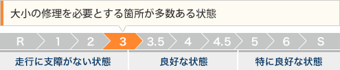 車両状態証明書修復歴の有無も一目瞭然。機能や内装・外装、走行距離、修復歴の有無をチェックし、クルマの状態を10段階にした車両状態証明書。数字や記号を使ってわかりやすく表示しています。
