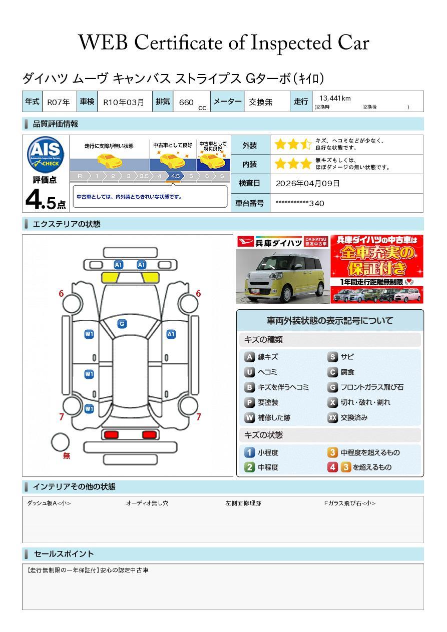車両状態証明書が付いておりますので、安心してお選び出来ます。詳しくは、スタッフまでお気軽にお問合せください。