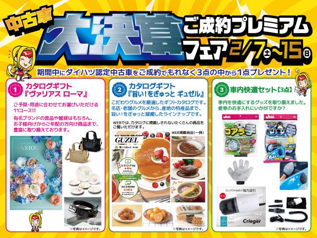 2月7日(土)から2月15日(日)の期間中に中古車ご成約で成約記念品をプレゼント!3つの中からお一つ選んでいただけます。この期間にぜひご来店ください。