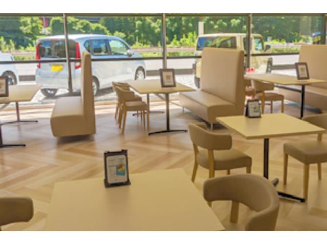 • 道路に面する西側はガラス張りで店内は陽の光あふれる明るい空間です