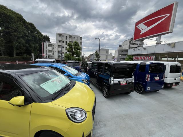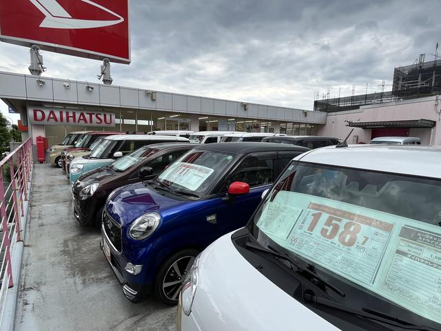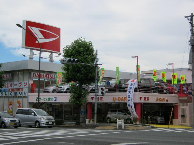 環状8号線外回り沿いに、中古車・新車・サービス工場一体の総合店舗です。U−CAR展示場は2F屋上に常時20台弱の展示をしております。選りすぐりの軽自動車を中心に、他のダイハツ店舗とは一味違った品揃えを目指しております!また、整備工場も併設しておりますので、アフターメンテナンスもご安心してお任せくださいね!