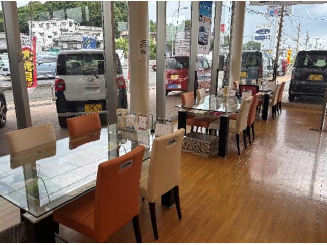 明るく開放的な店内で、商談やメンテナンスの待ち時間もごゆっくりおくつろぎいただけます。