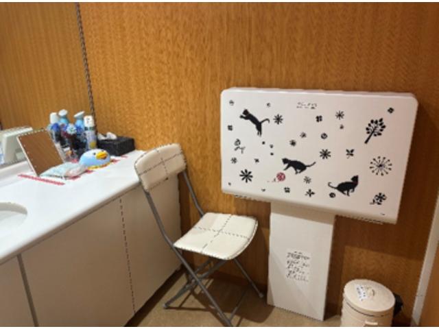 小さなお子様連れの方にも安心してお使いいただけるよう、トイレにおむつ交換台をご用意しています。