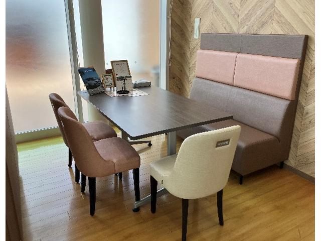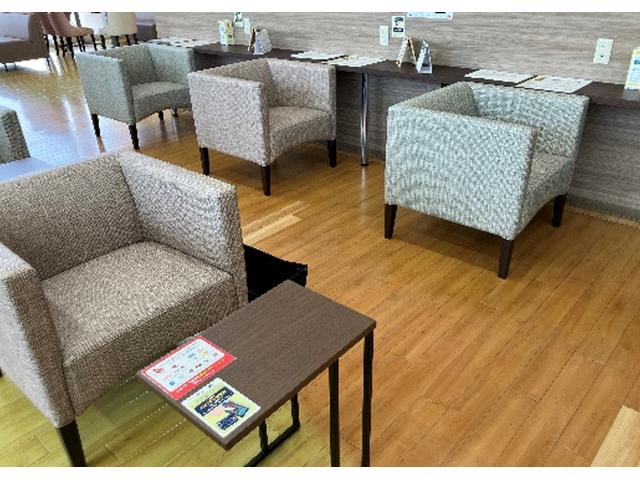 明るく開放的な店内で、商談やメンテナンスの待ち時間もごゆっくりおくつろぎいただけます。