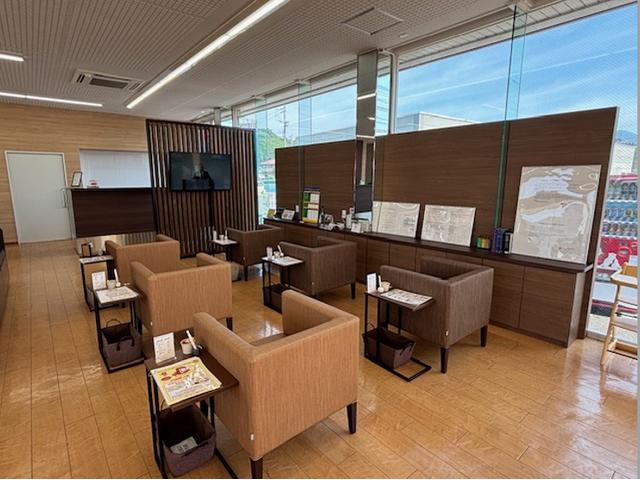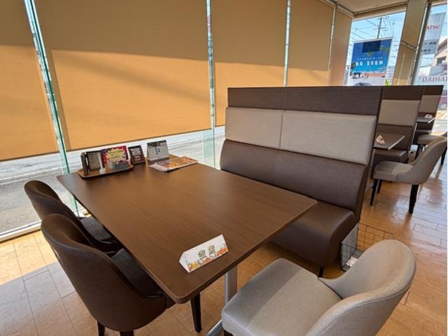 明るく開放的な店内で、商談やメンテナンスの待ち時間もごゆっくりおくつろぎいただけます。