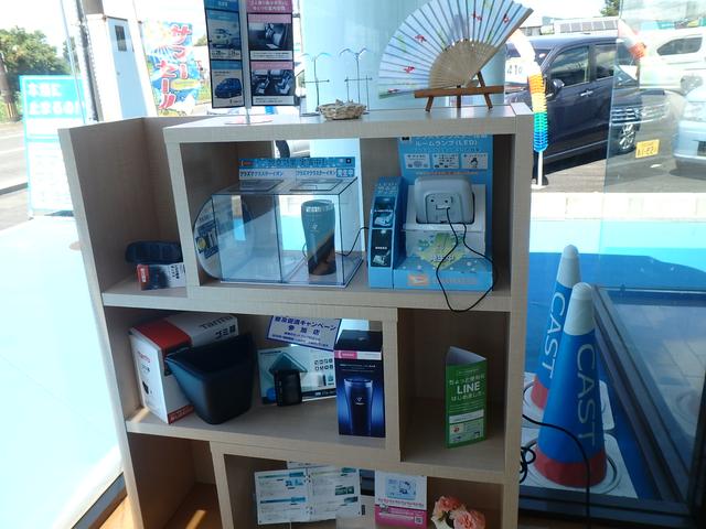 使い勝手が良い小物類等も展示しております。車内を楽しく、自分なりの空間を作ってください。