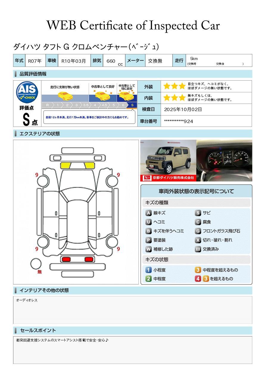 up タフトG クロムベンチャー スマートアシスト 届出済み未使用車(京都府)の中古車情報