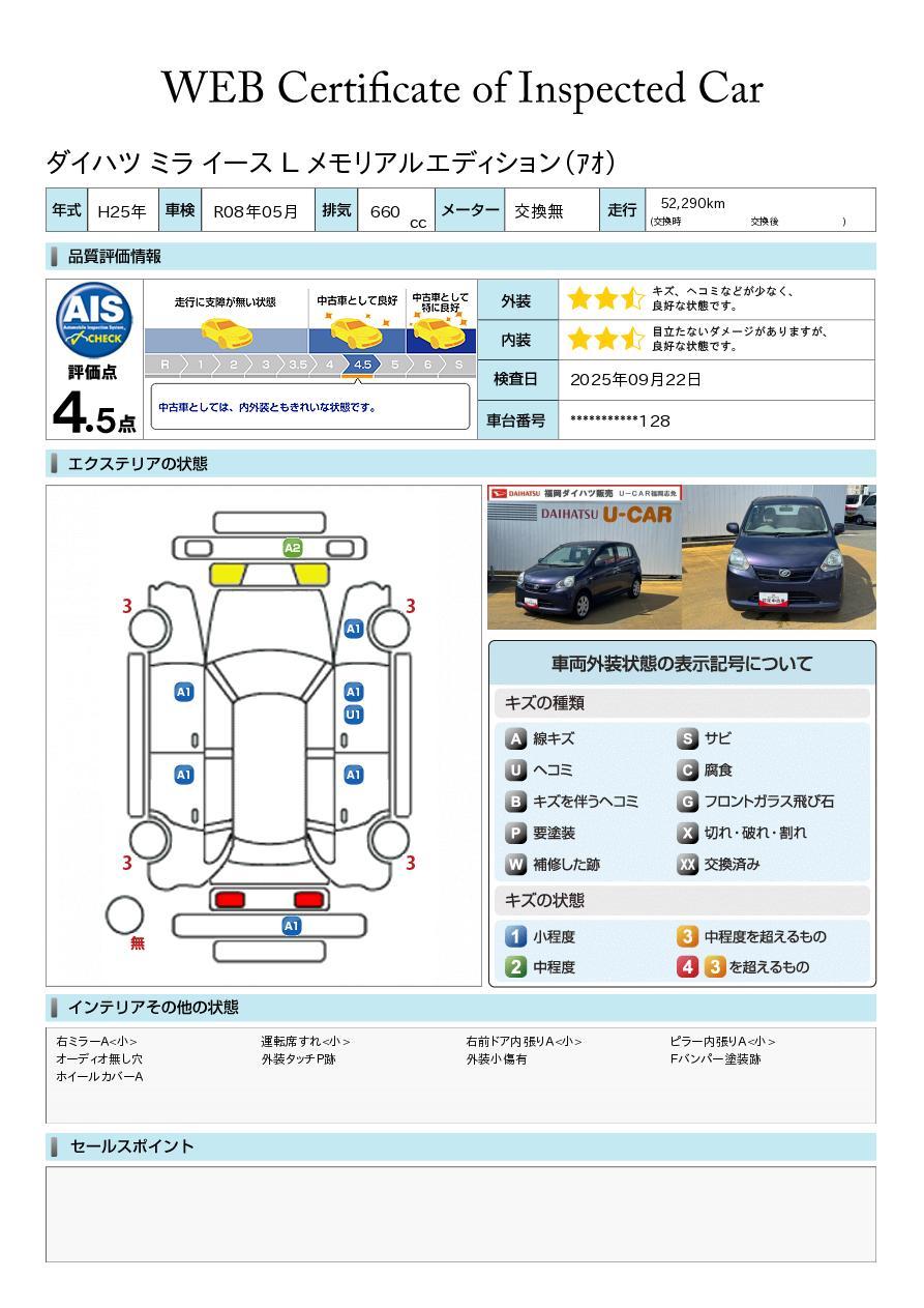車両状態証明書が付いておりますので、安心してお選び出来ます。詳しくは、スタッフまでお気軽にお問合せください。
