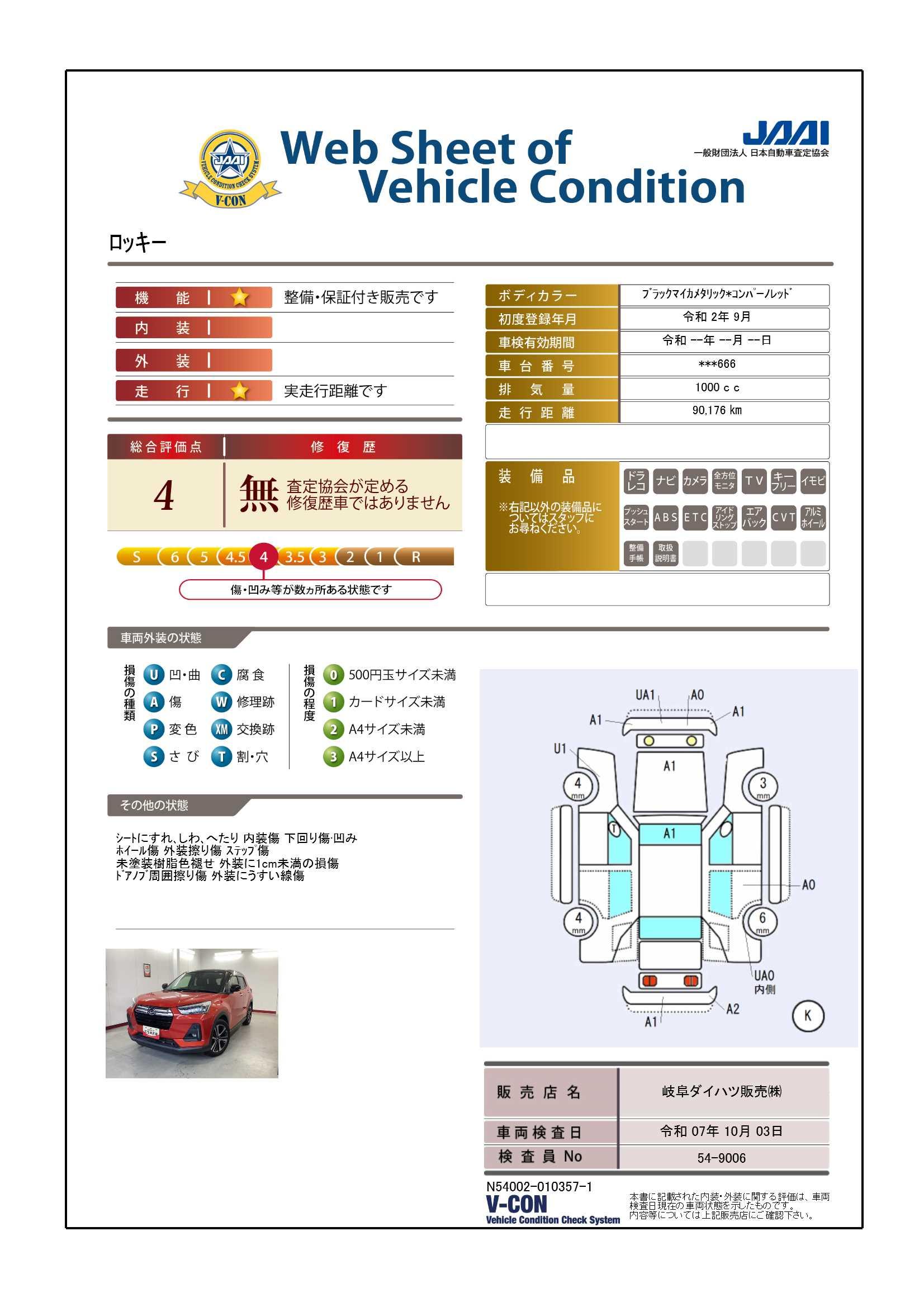 現状の車両の状態に関しましては必ず販売店に確認をお願いします。(2008年10月からの評価基準改定により、一部の車両につき店頭の評価表記と違う場合がございます。詳しくは販売店にお問い合わせください。