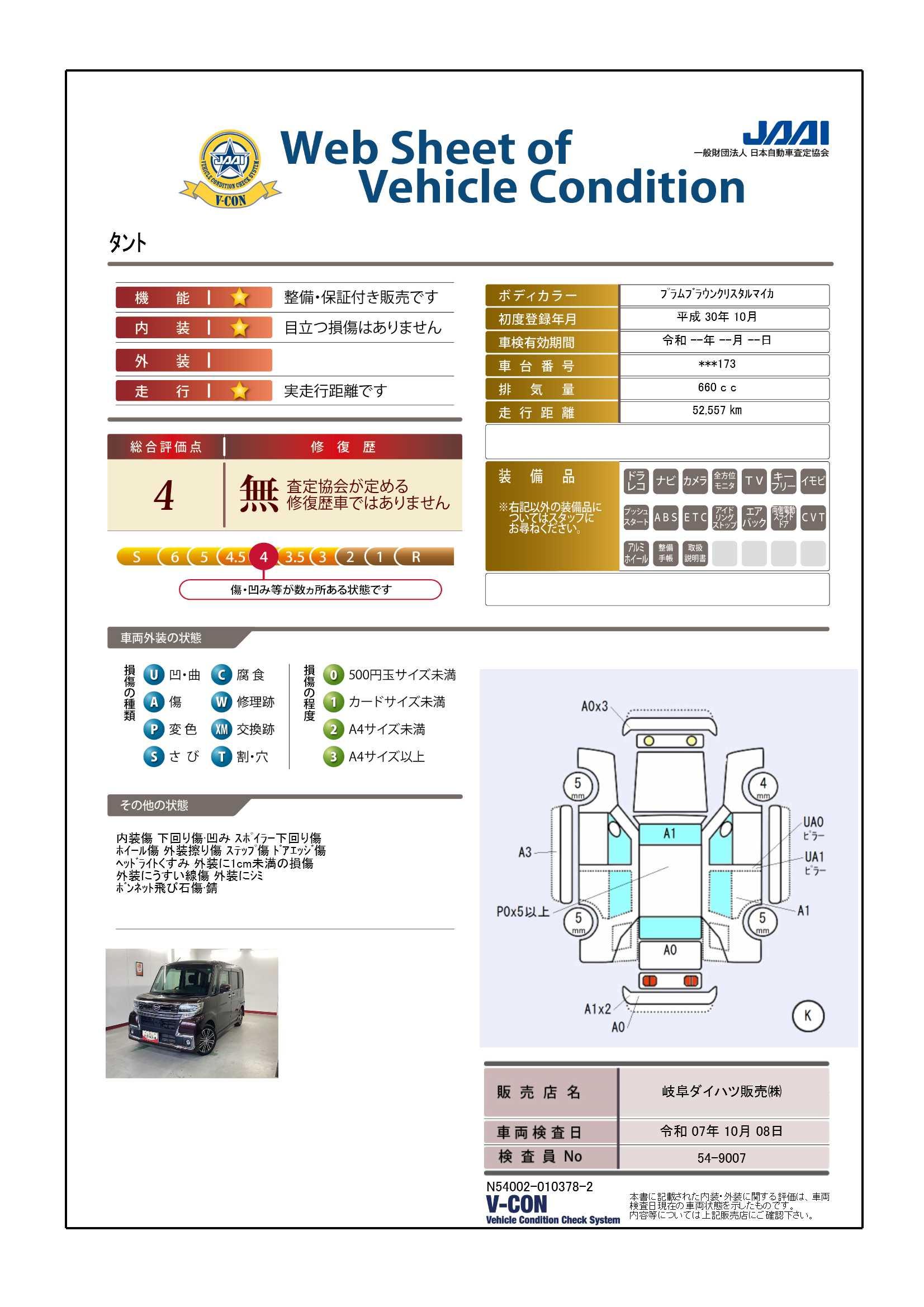 ダイハツ認定中古車なら展示車両の状態を開示しております。展示車両に自信があるからこそ出来るサービスです。