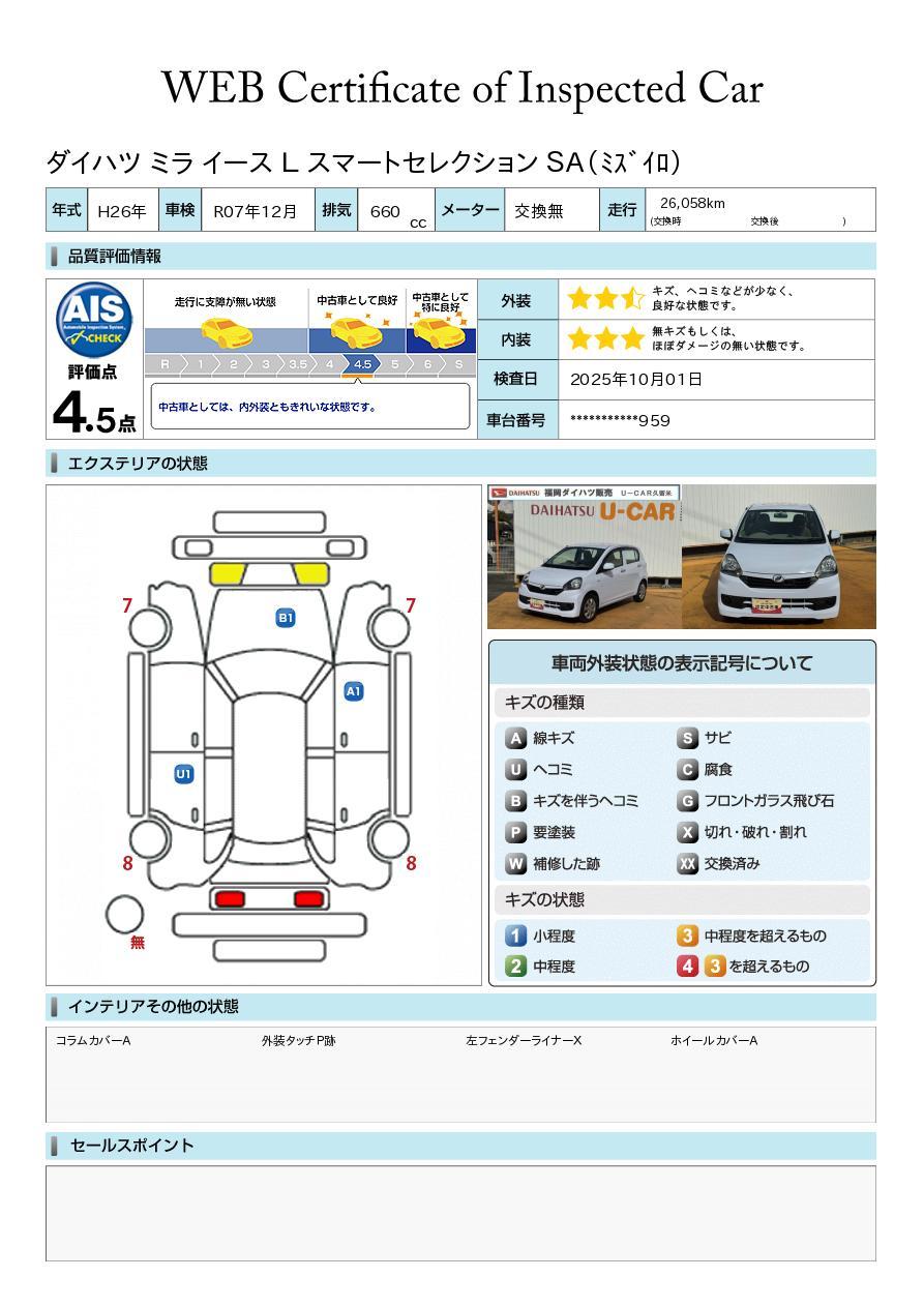 評価点及び上記コメントは、評価日時での車両状態を示したものです。
