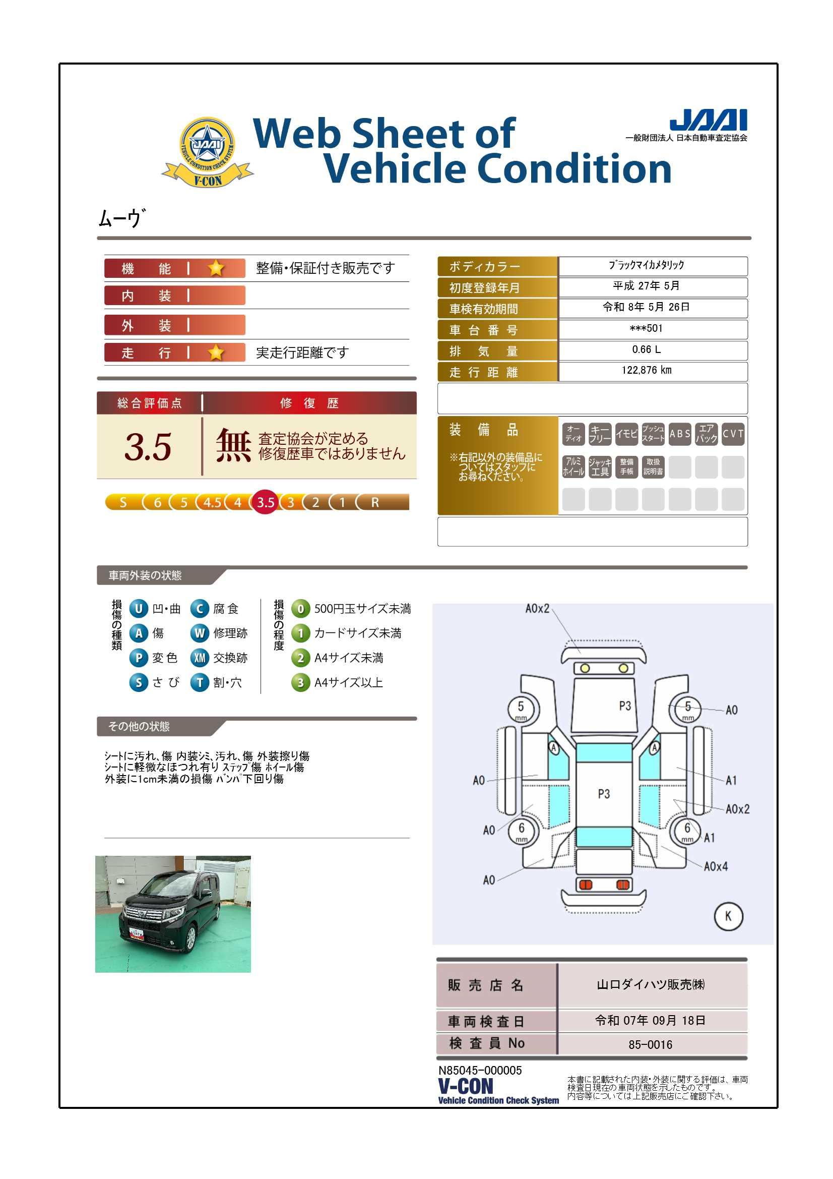 取扱説明書 | なし | 車台番号末尾 | 501 | 管理番号 | 44500377717 |