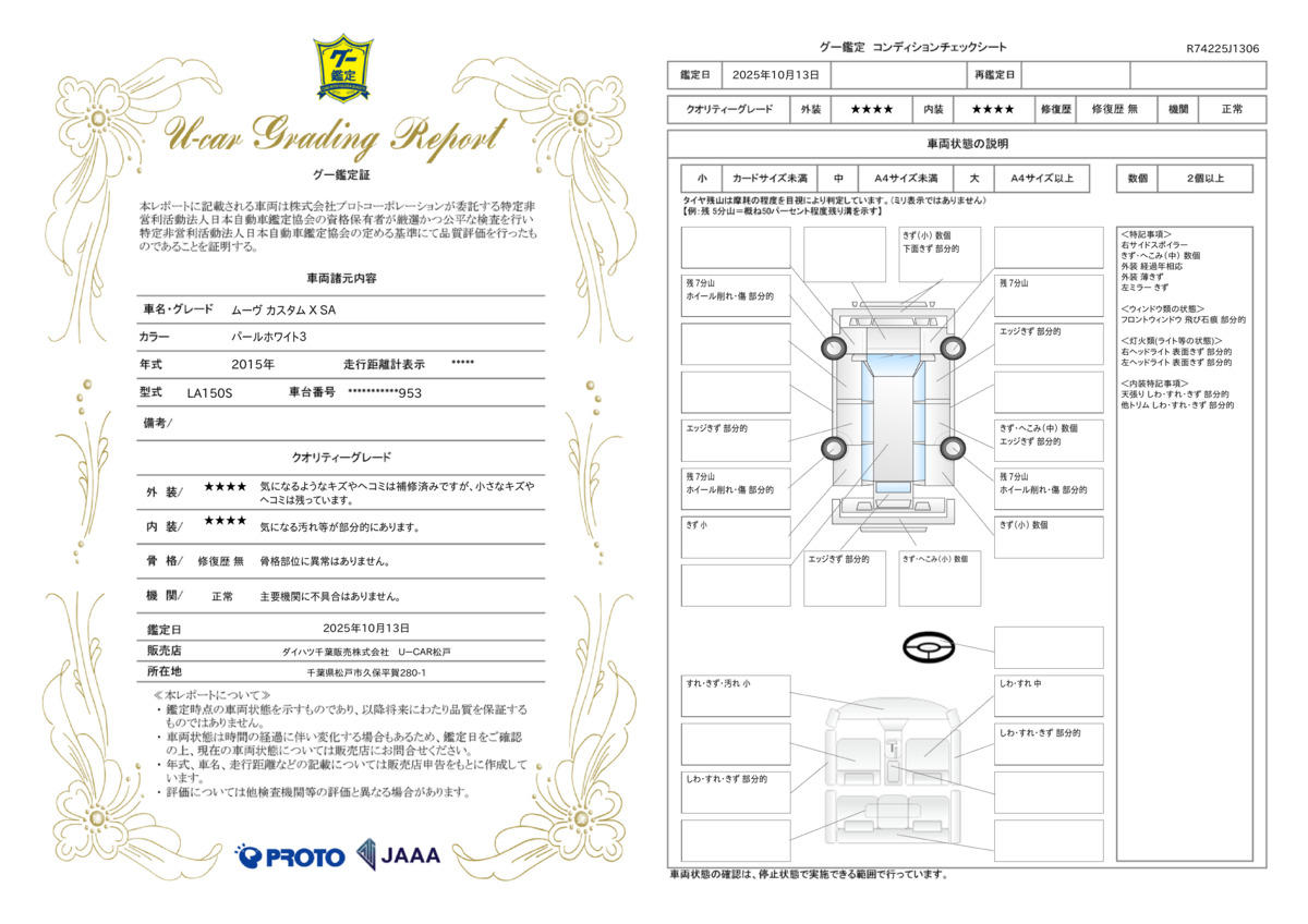 キズ・凹みその他情報*室内ルーフにシミがあります。 画像は一部分の画像です。その他の部位にも細かい傷や凹みなどがありますので、実車をご覧になっていただき車両の状態をご確認ください。