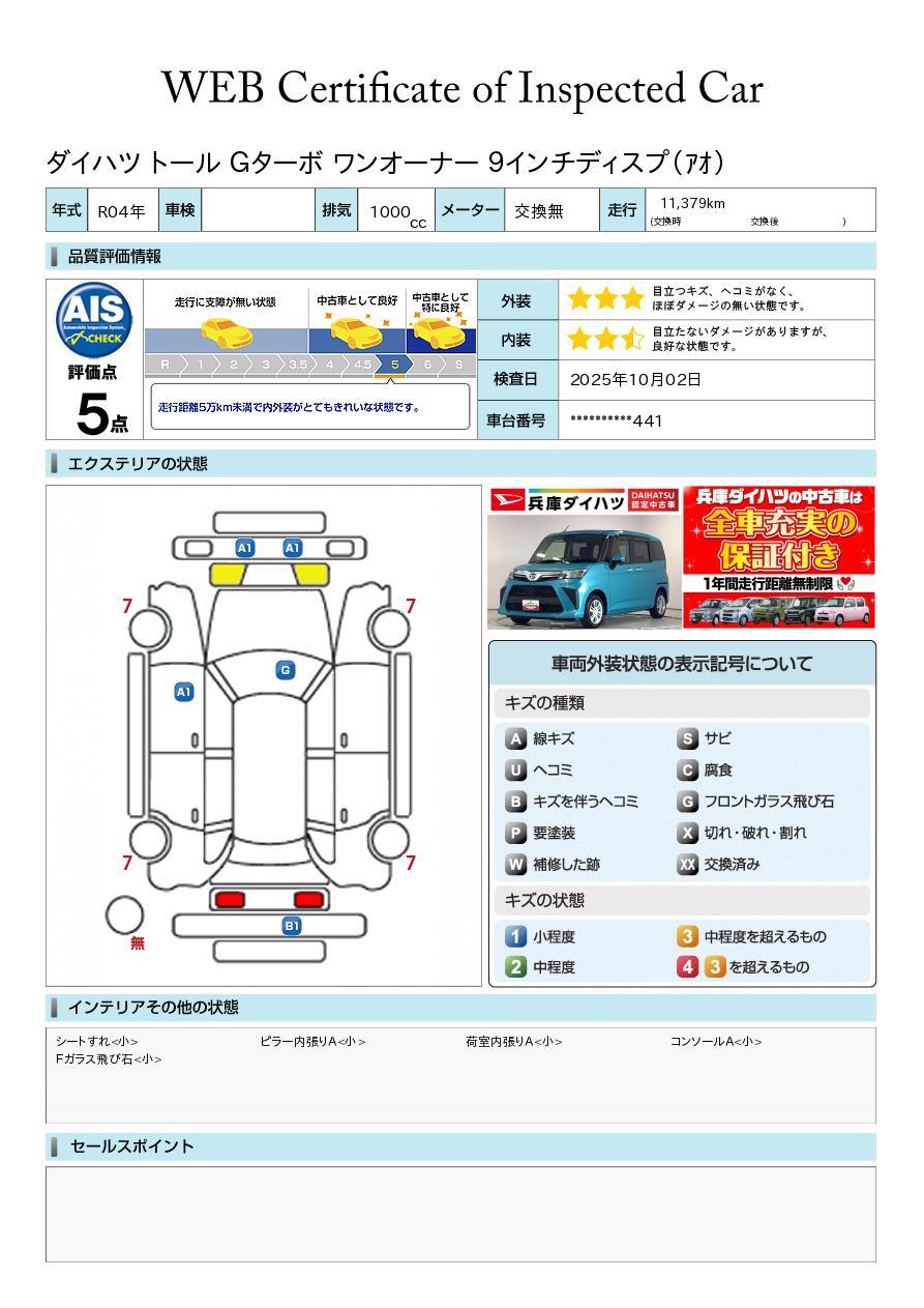 new トールGターボ ワンオーナー 9インチディスプレイオーディオ(兵庫県)の中古車情報