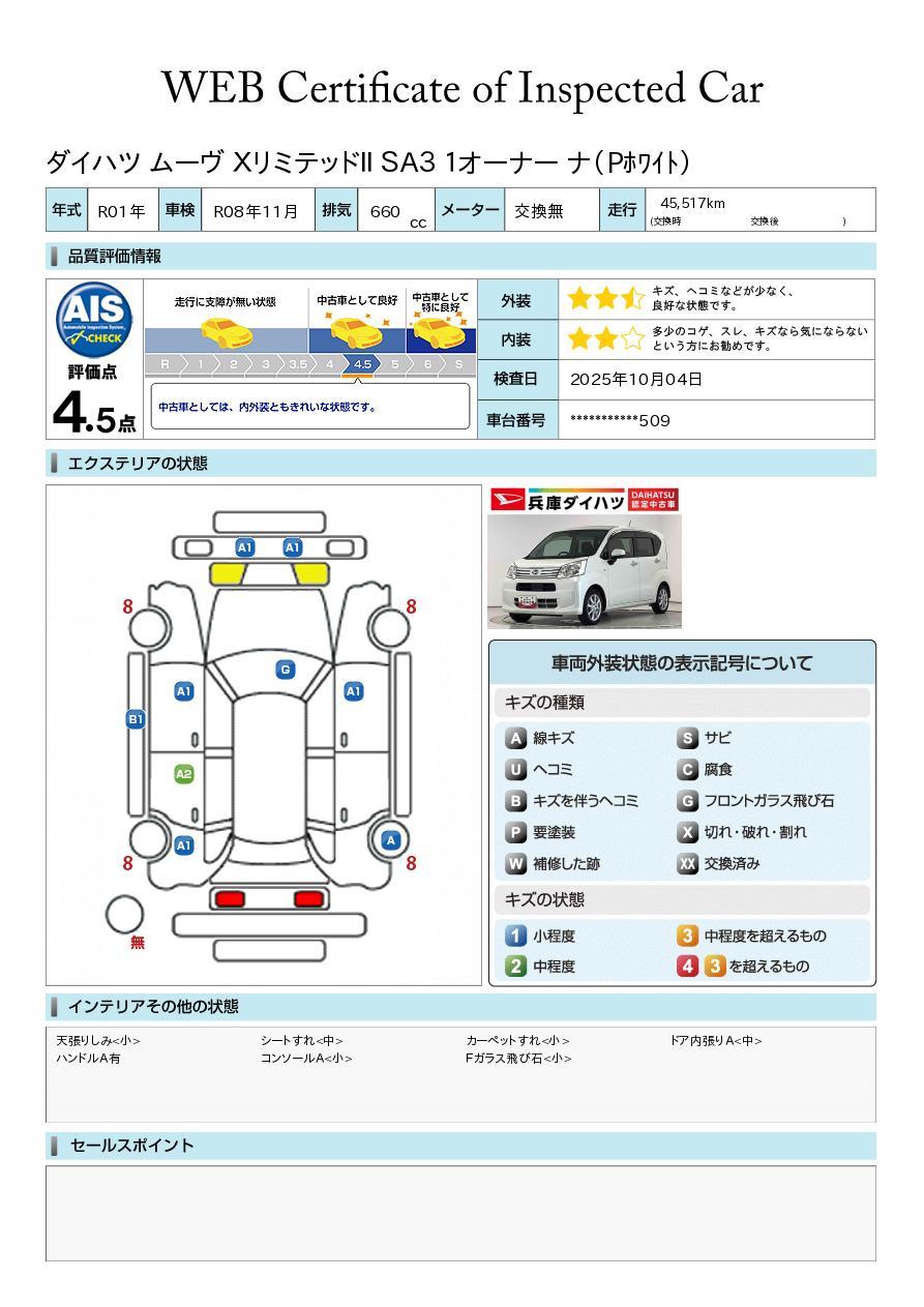 up ムーヴXリミテッドII SAIII 1オーナー ナビTV ドラレコ(兵庫県)の中古車情報