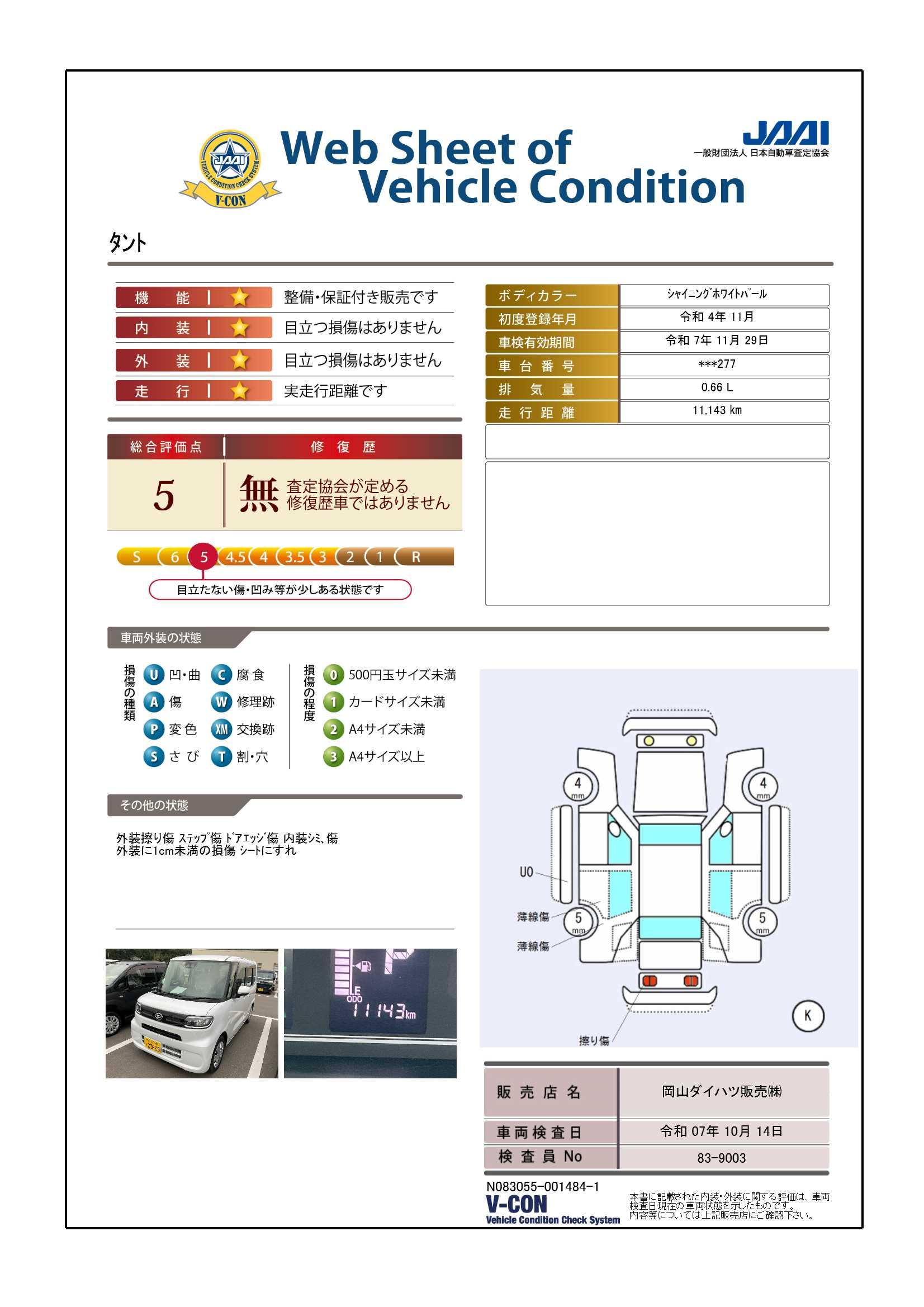 評価点及び上記コメントは、評価日時での車両状態を示したものです。