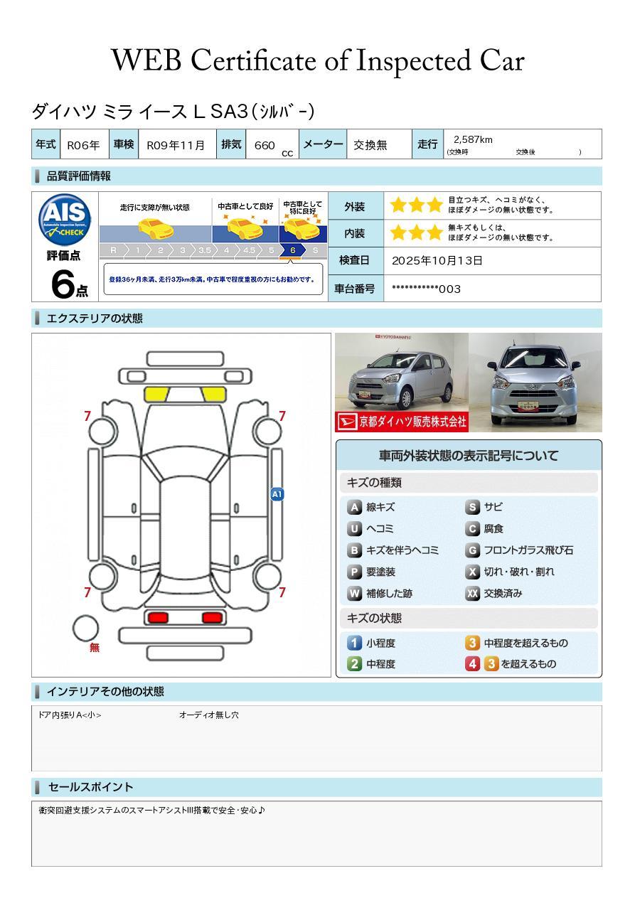 up ミライースL SAIII 前後コーナーセンサー アイドリングストップ(京都府)の中古車情報