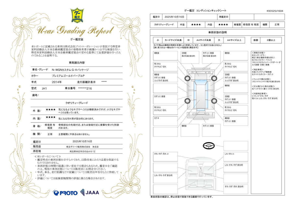 up N−WGNカスタムG・Aパッケージ 修復歴/車検整備付/走行35904キロ(埼玉県)の中古車情報