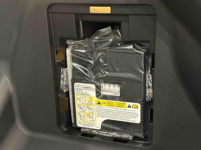 トランクのサイドガーニッシュ内にタイヤパンク応急修理キットが格納されています。
