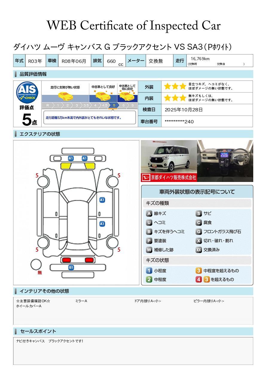 up ムーヴキャンバスGブラックアクセントVS SAIII ナビ パノラマモニター(京都府)の中古車情報