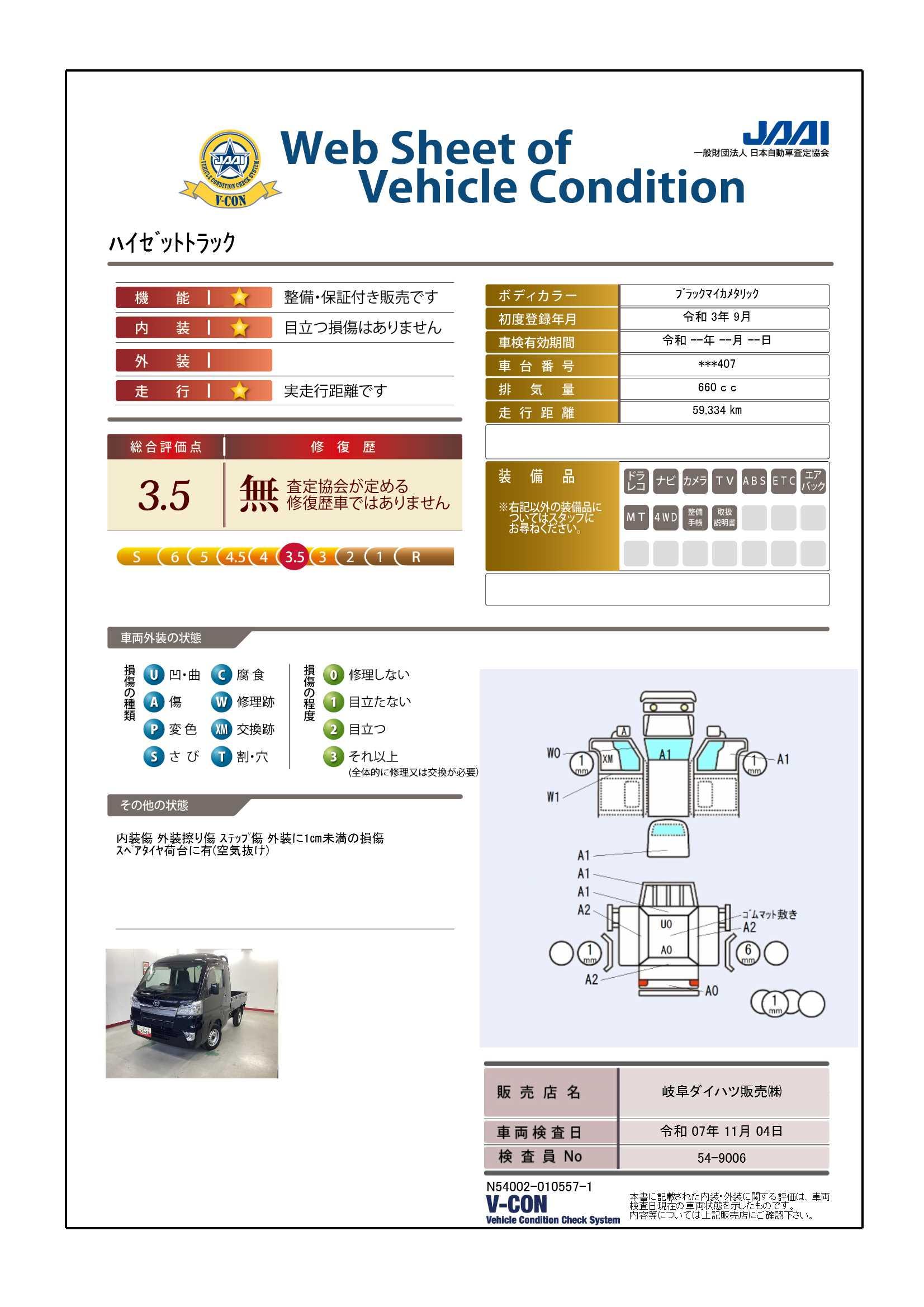 評価点及び上記コメントは、評価日時での車両状態を示したものです。