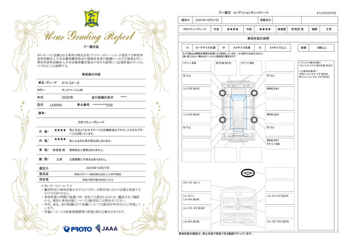 中古車をお選びいただく際に気になる走行距離や修復歴などに加えてキズ・凹みの有無・状態や消耗品の交換、今までの整備状況が “ダイハツ認定中古車カルテ”でわかります。