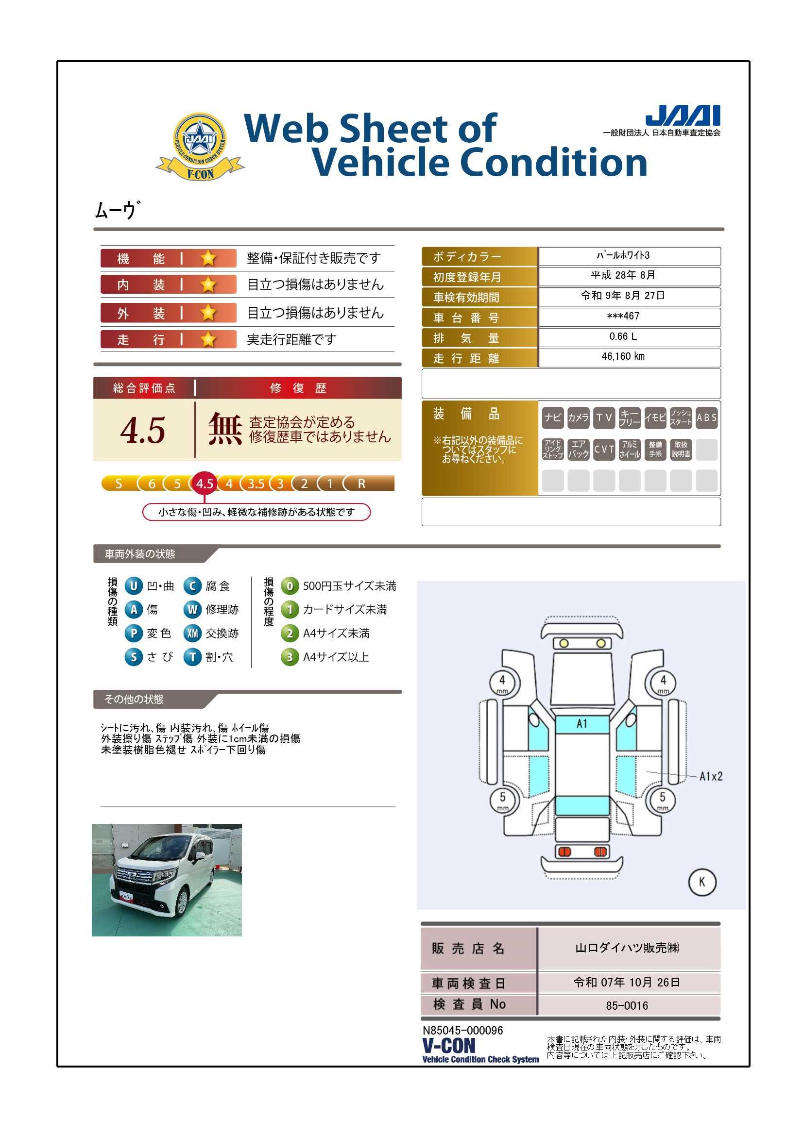 | 定期点検整備コメント | 定期点検整備:付、定期点検整備料金:車両価格に含む | ||