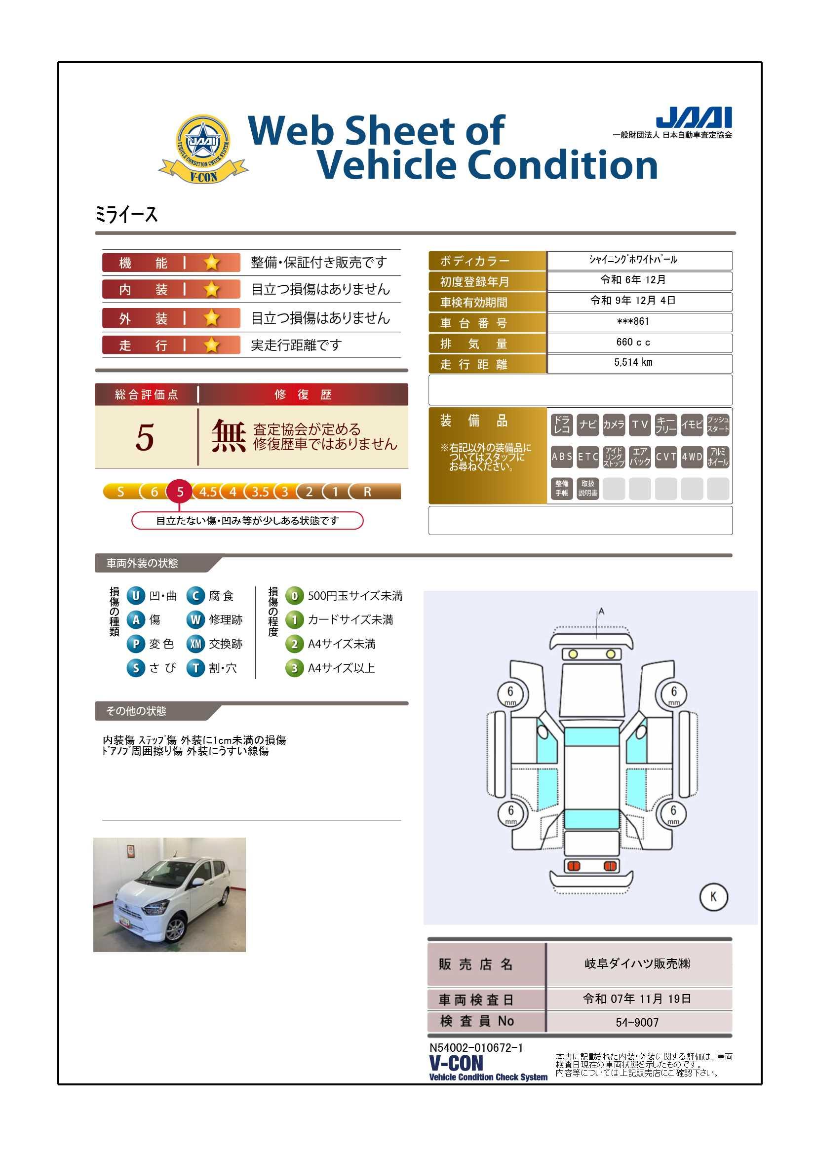 一般財団法人 日本自動車査定協会の車両状態証明書となります。