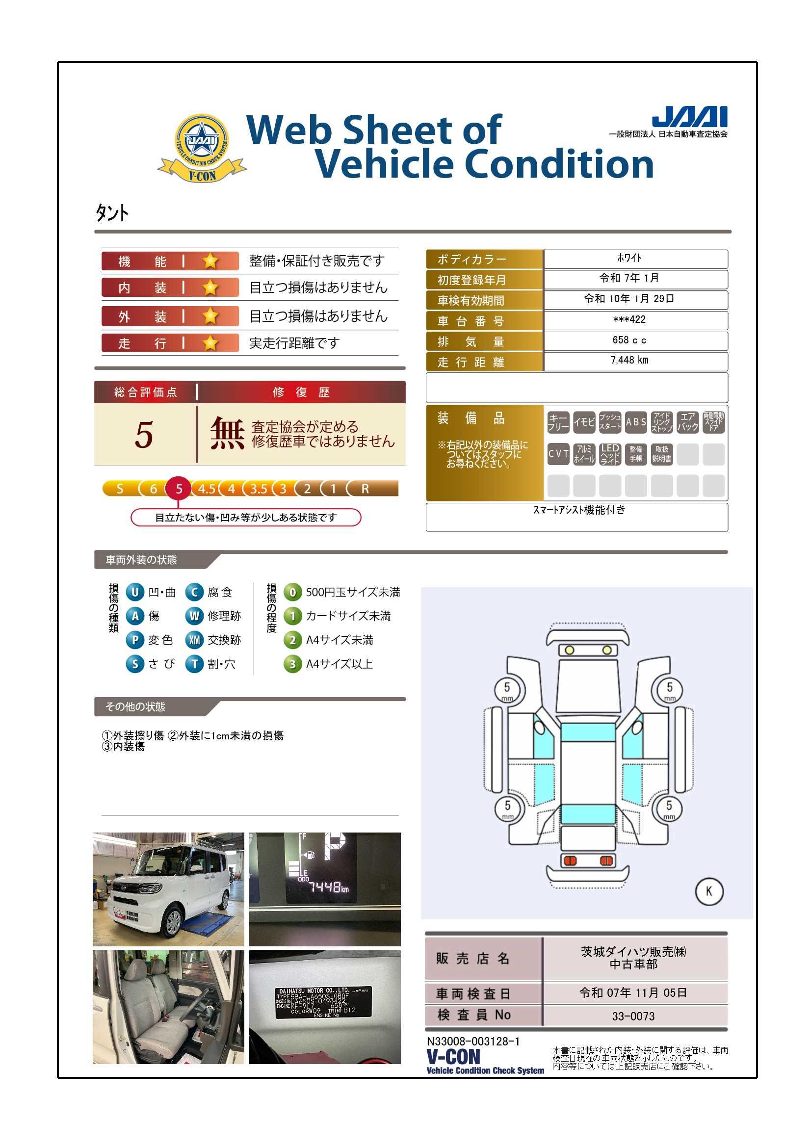 | 定期点検整備コメント | 定期点検整備:付、定期点検整備料金:車両価格に含む | ||