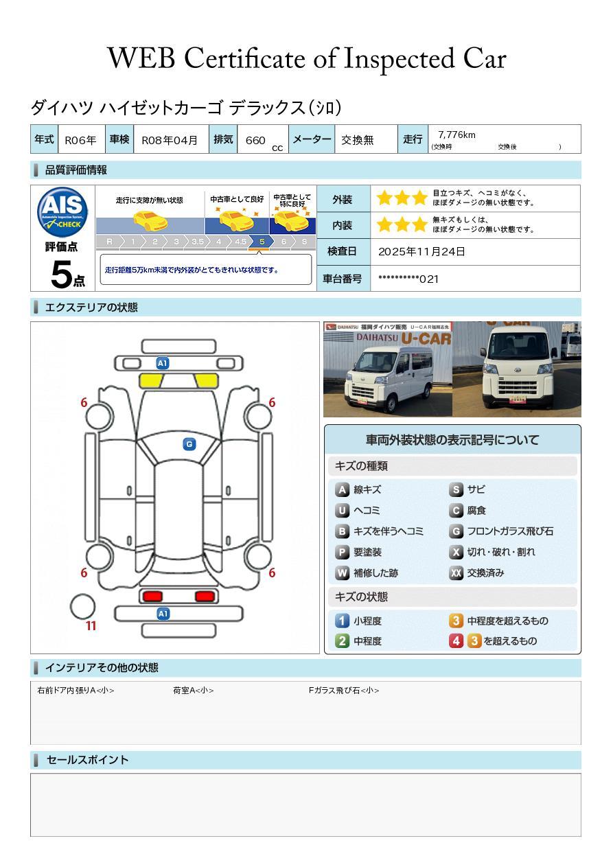 株式会社AISの車両状態証明書となります。