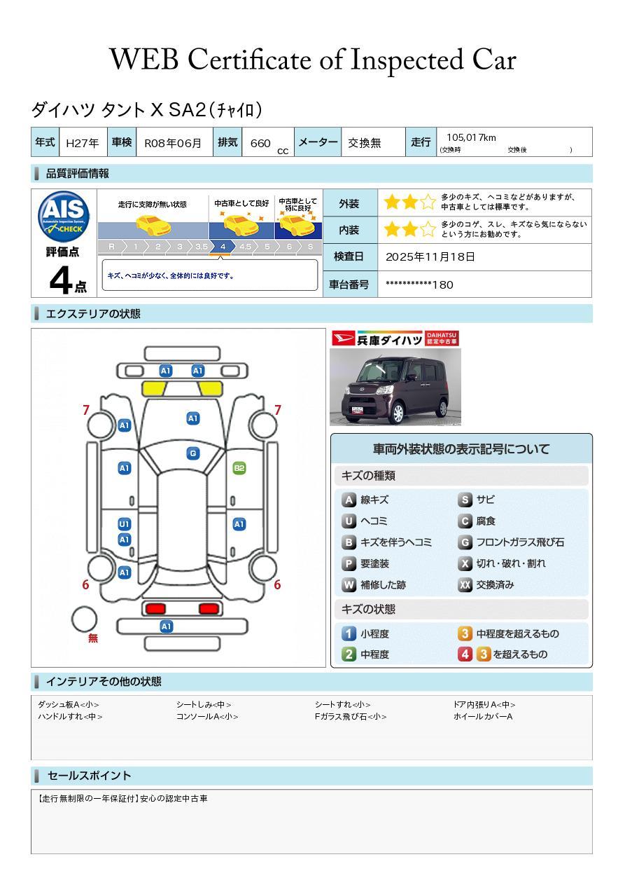 車両状態証明書が付いておりますので、安心してお選び出来ます。詳しくは、スタッフまでお気軽にお問合せください。