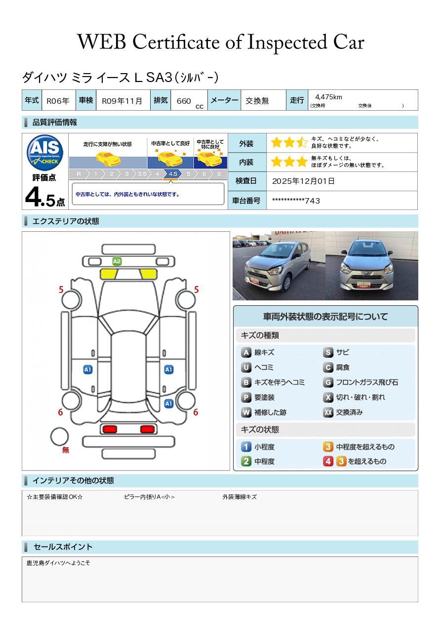 車両状態証明書が付いておりますので、安心してお選び出来ます。詳しくは、スタッフまでお気軽にお問合せください。