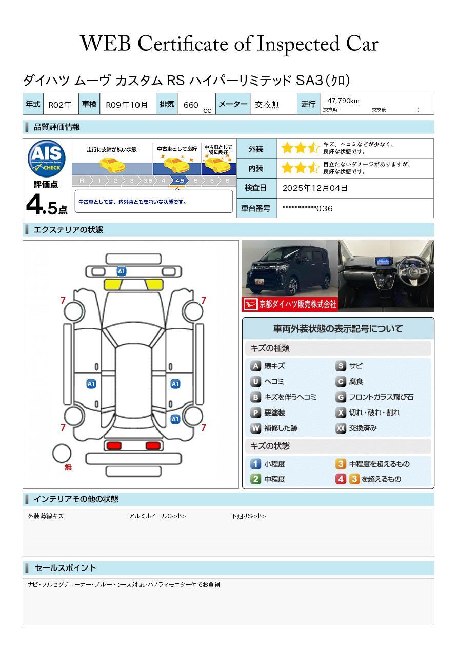 定期点検整備コメント 定期点検整備:付、定期点検整備料金:車両価格に含む