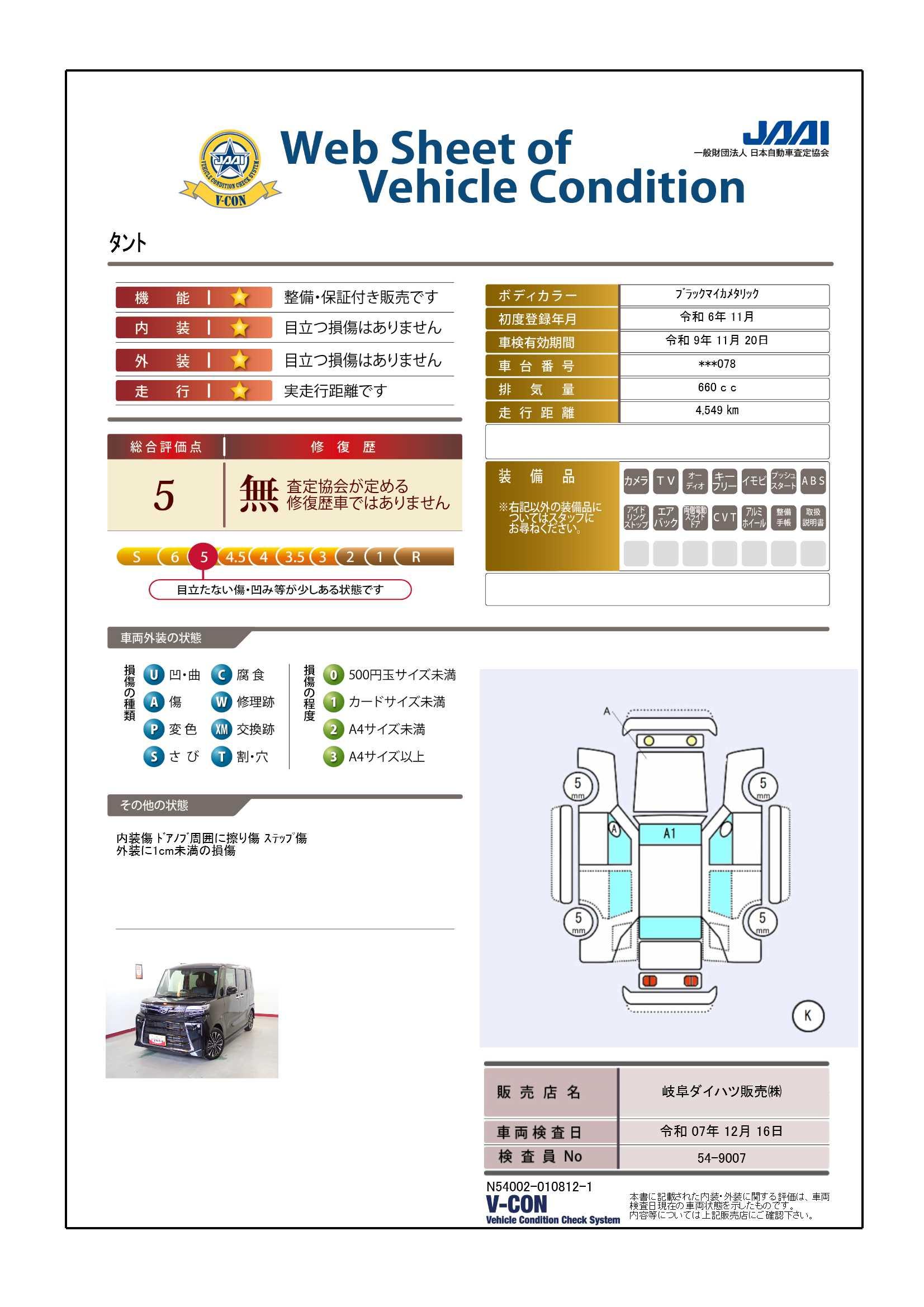 現状の車両の状態に関しましては必ず販売店に確認をお願いします。(2008年10月からの評価基準改定により、一部の車両につき店頭の評価表記と違う場合がございます。詳しくは販売店にお問い合わせください。