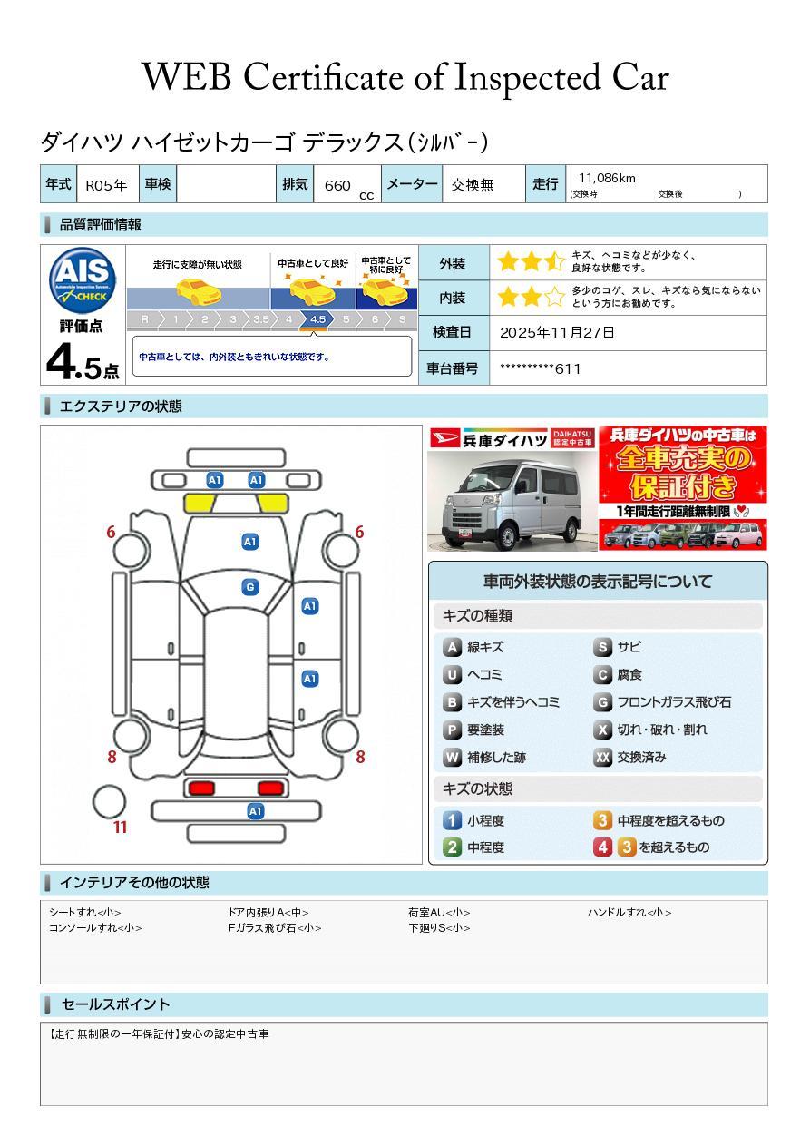 車両状態証明書が付いておりますので、安心してお選び出来ます。詳しくは、スタッフまでお気軽にお問合せください。