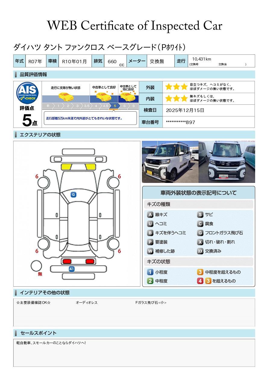 株式会社AISの車両状態証明書となります。