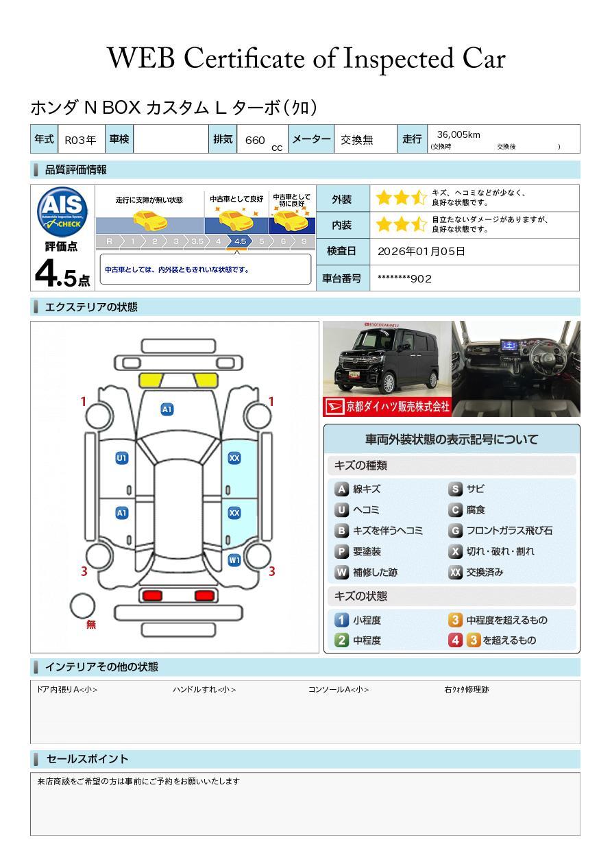new N−BOXカスタムLターボ ワンオーナー ナビ バックカメラ 前後ドラレコ(京都府)の中古車情報