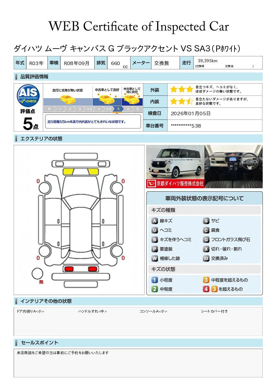 up ムーヴキャンバスGブラックアクセントVS SAIII ワンオーナー ナビ(京都府)の中古車情報