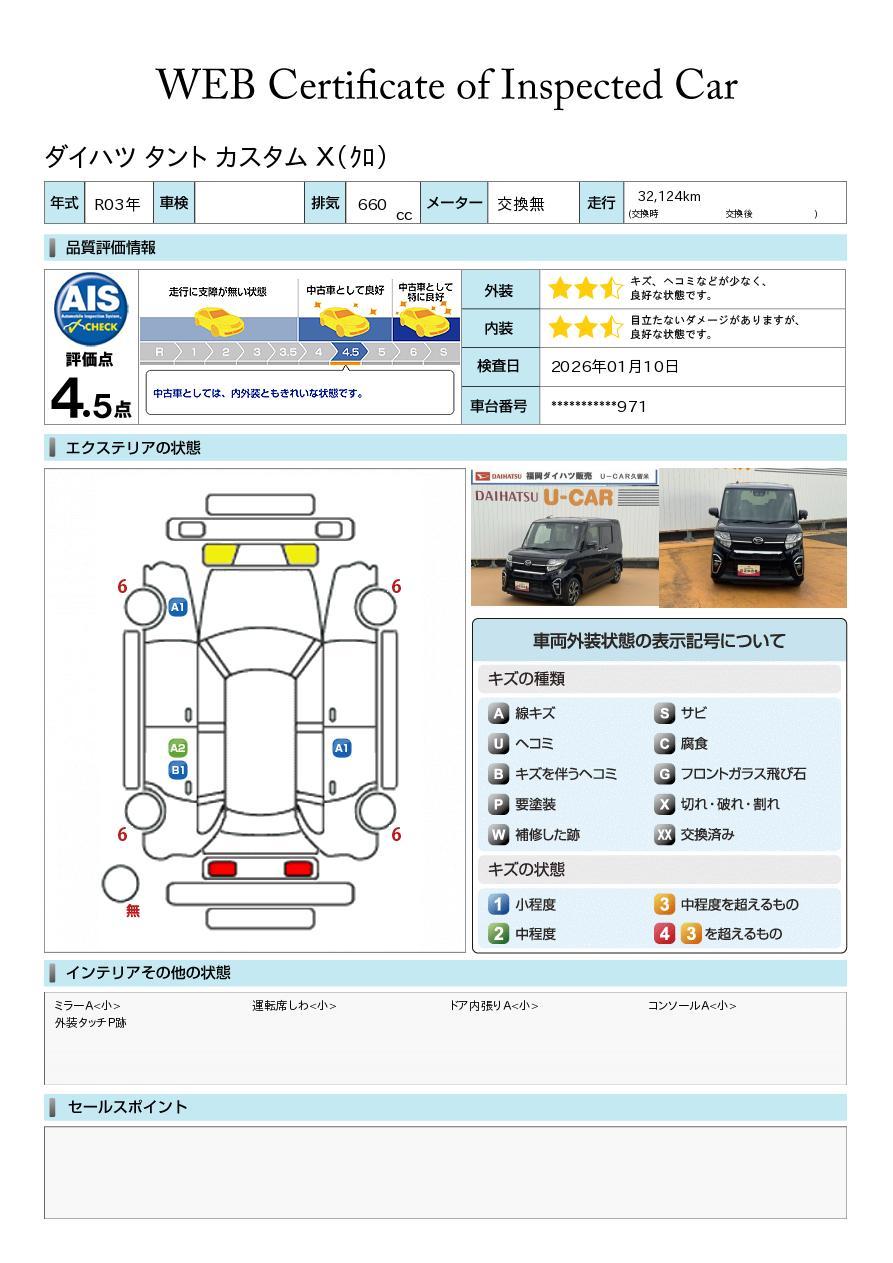 株式会社AISの車両状態証明書となります。