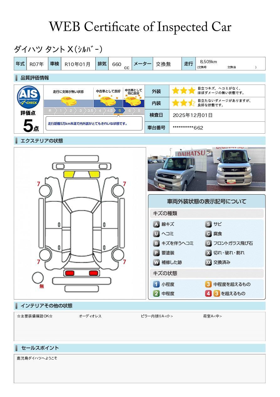 車両状態証明書が付いておりますので、安心してお選び出来ます。詳しくは、スタッフまでお気軽にお問合せください。