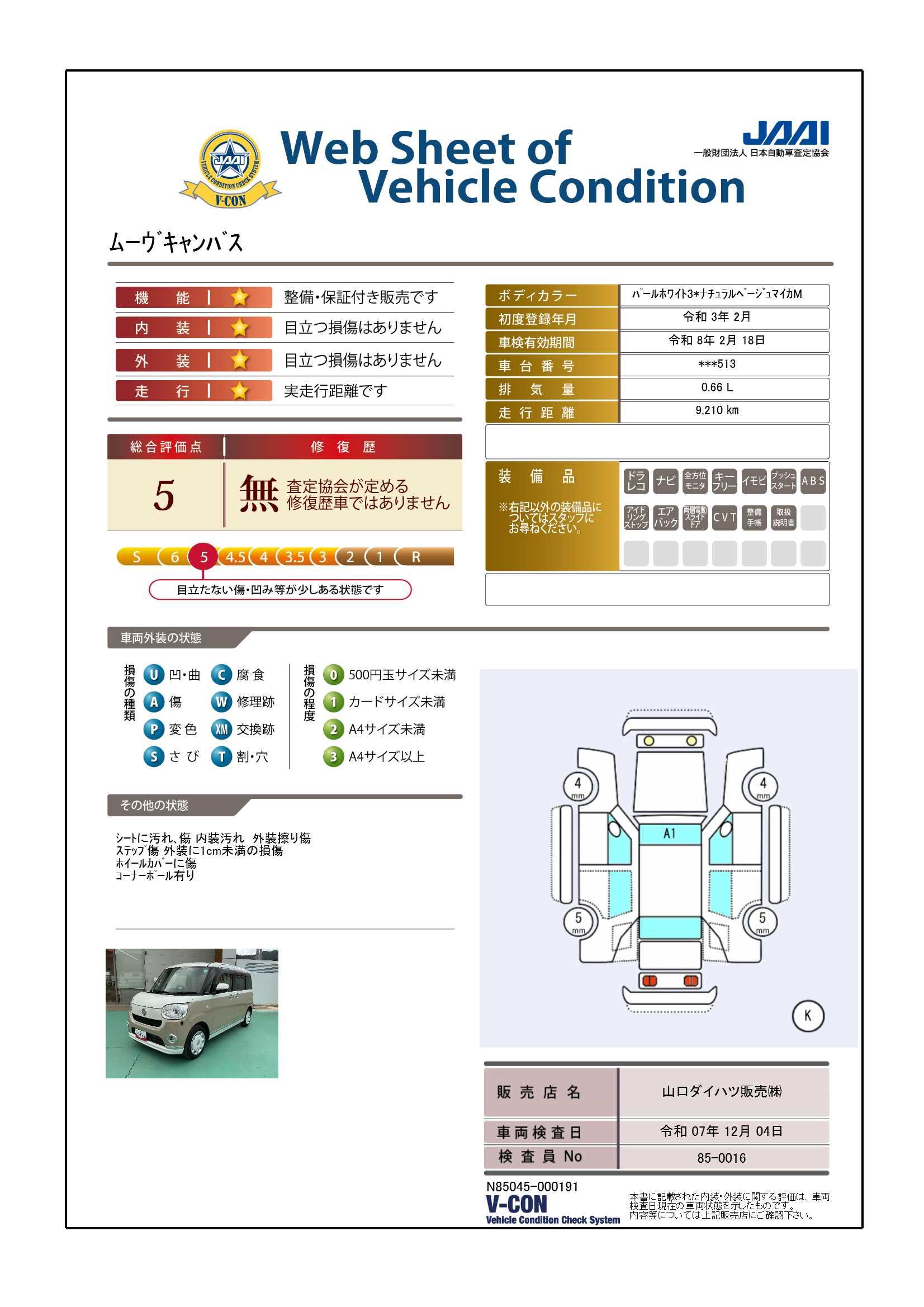 | 定期点検整備コメント | 定期点検整備:付、定期点検整備料金:車両価格に含む | ||