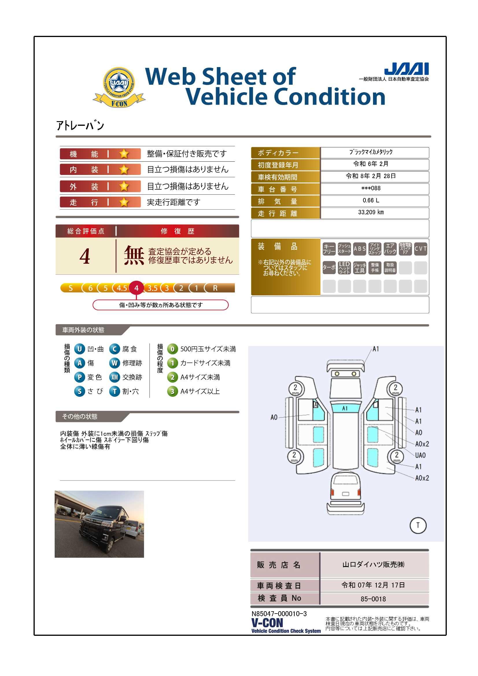 | 定期点検整備コメント | 定期点検整備:付、定期点検整備料金:車両価格に含む | ||