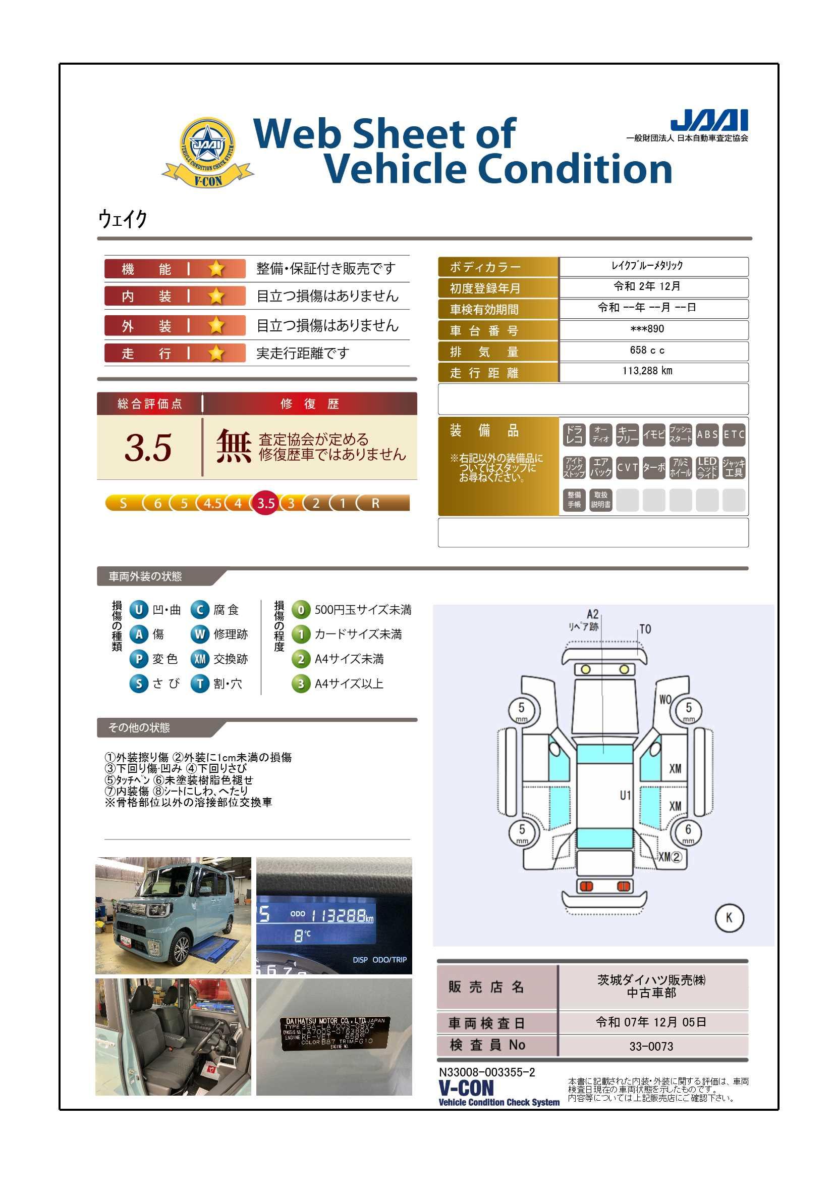 | 定期点検整備コメント | 定期点検整備:付、定期点検整備料金:車両価格に含む | ||