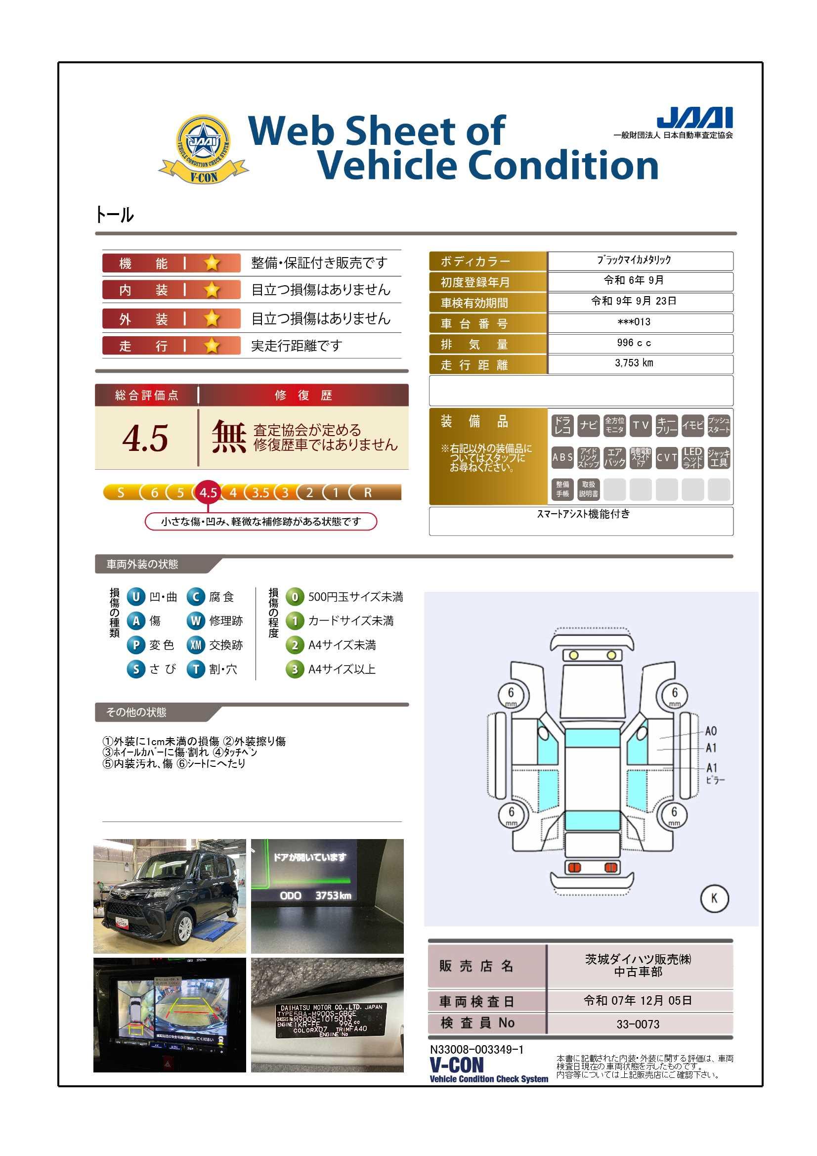 | 定期点検整備コメント | 定期点検整備:付、定期点検整備料金:車両価格に含む | ||