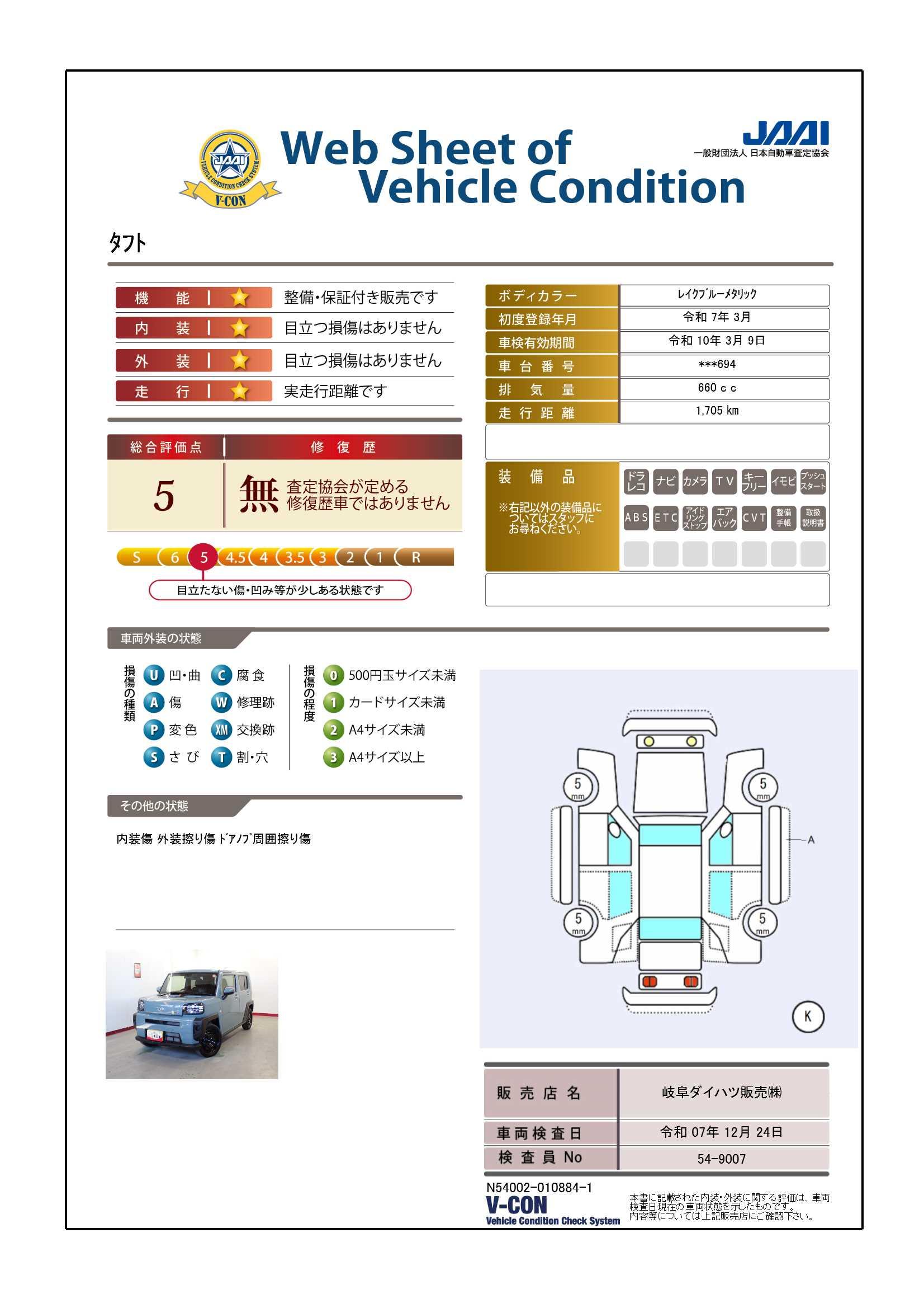 現状の車両の状態に関しましては必ず販売店に確認をお願いします。(2008年10月からの評価基準改定により、一部の車両につき店頭の評価表記と違う場合がございます。詳しくは販売店にお問い合わせください。