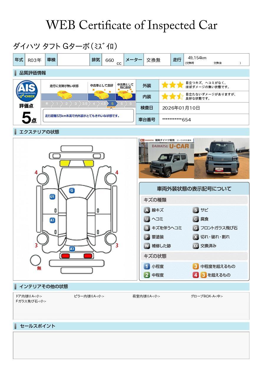 株式会社AISの車両状態証明書となります。